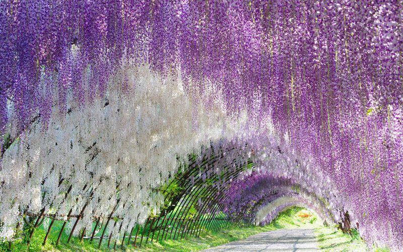 During the festival period, the wisteria trees are illuminated at night, allowing visitors to experience their beauty in an even more dramatic way. Video here: https://www.youtube.com/watch?v=uaXPeN1nv9s