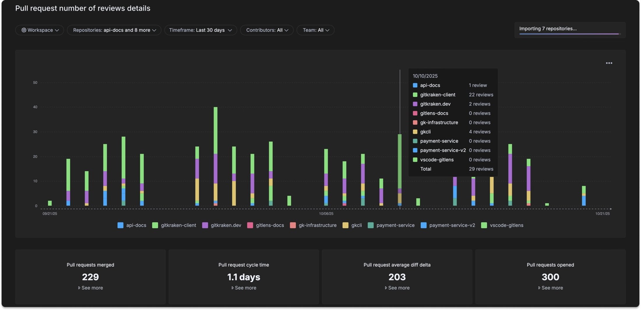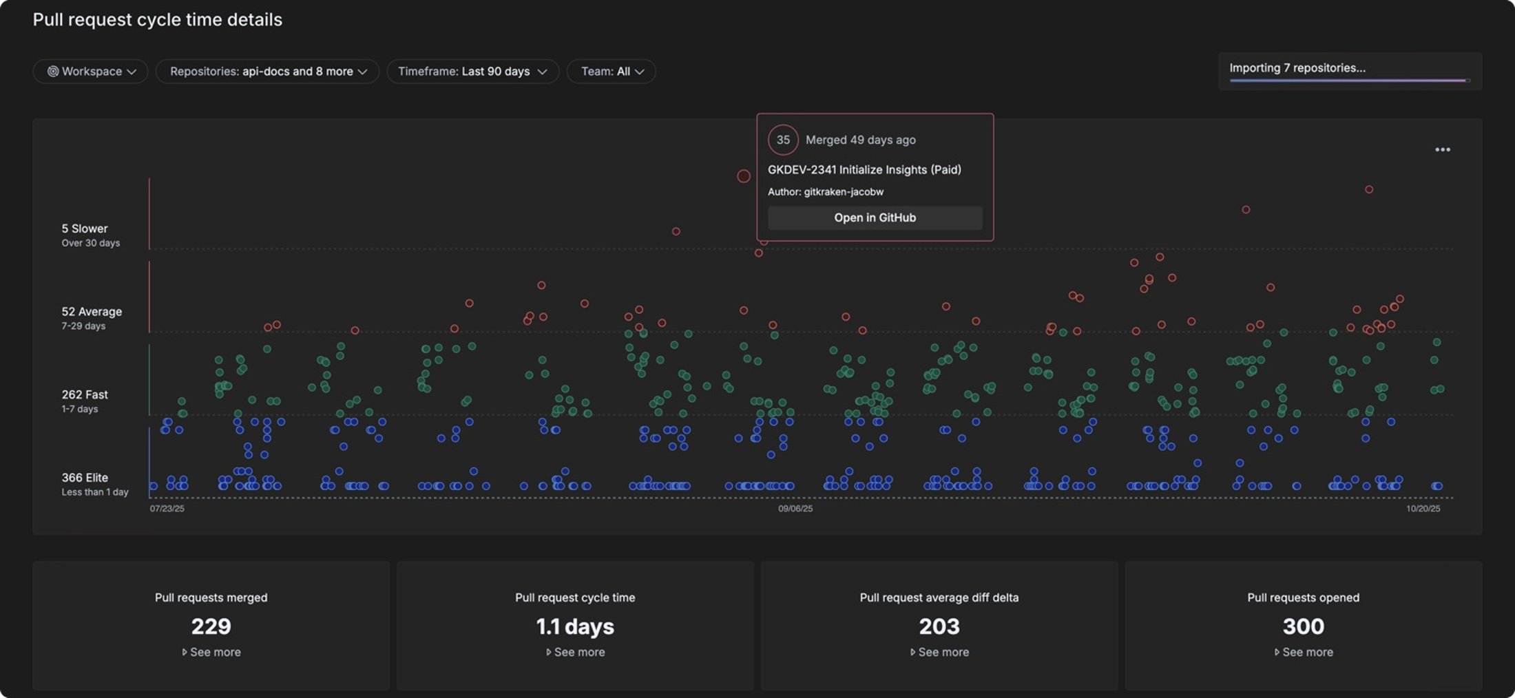 Teams often lose up to 30% of development capacity to friction such as context switching and technical debt. GitKraken Insights exposes these hidden drains so organizations can reclaim time and accelerate delivery.