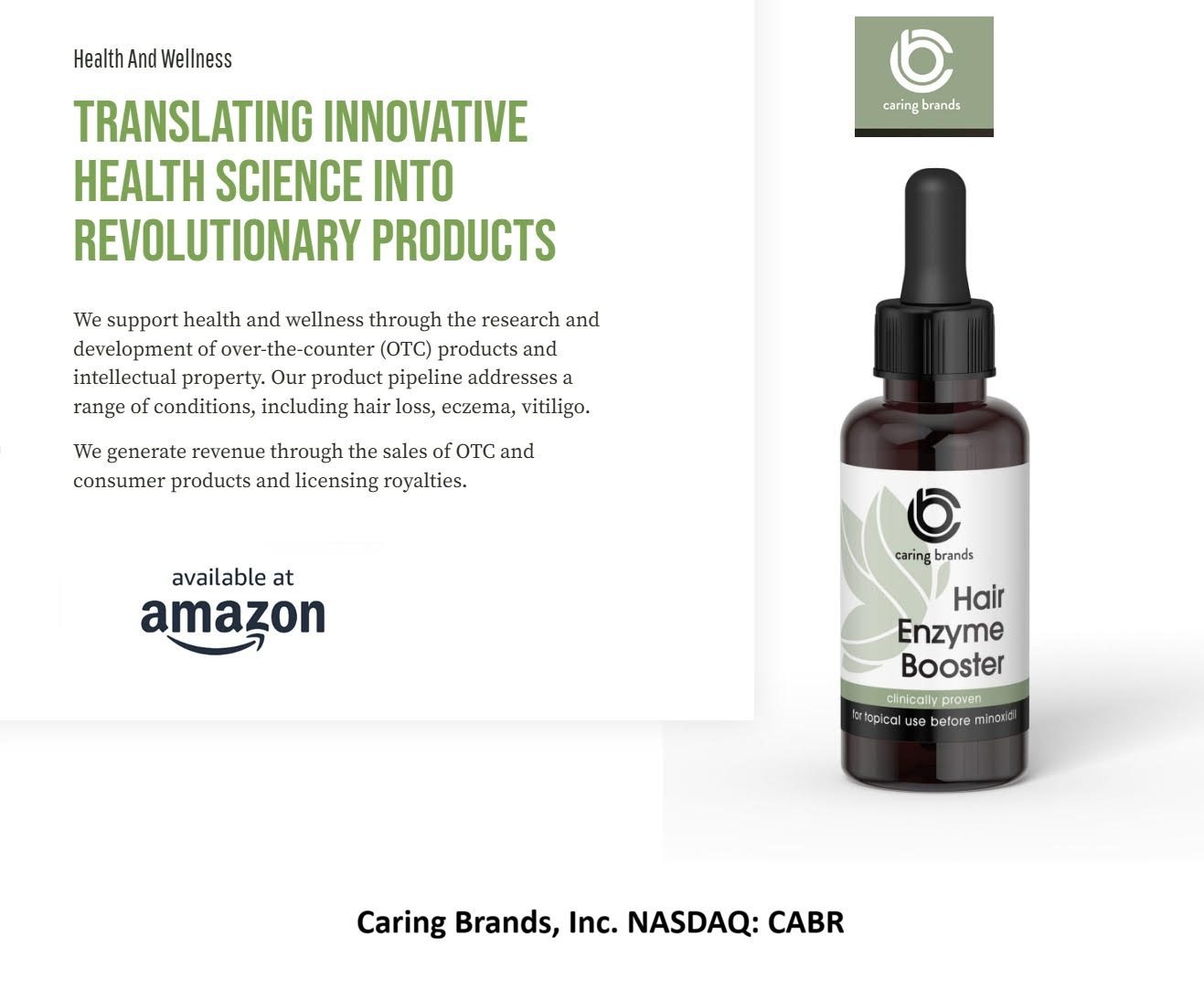 Caring Brands is building a diversified portfolio of unique, patented, and clinically validated products, reducing reliance on any single asset while expanding its total addressable market.