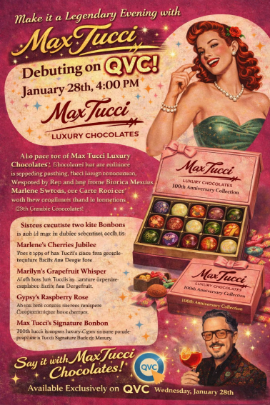 #1 bestselling cookbook The Delmonico Way!, media personality, and third-generation steward of America's most storied dining dynasty, makes his highly anticipated national debut on QVC with the launch of a new 16-piece bonbon collection from Max Tucci Luxury Chocolates, airing Wednesday, January 28th at 4:00 PM ET* on Gourmet Holiday Valentine's Edition with QVC host and beauty, home decor, and culinary enthusiasts Albetti Popaj and Sandra Bennett— Visit www.qvc.com for more information and to purchase the collection.