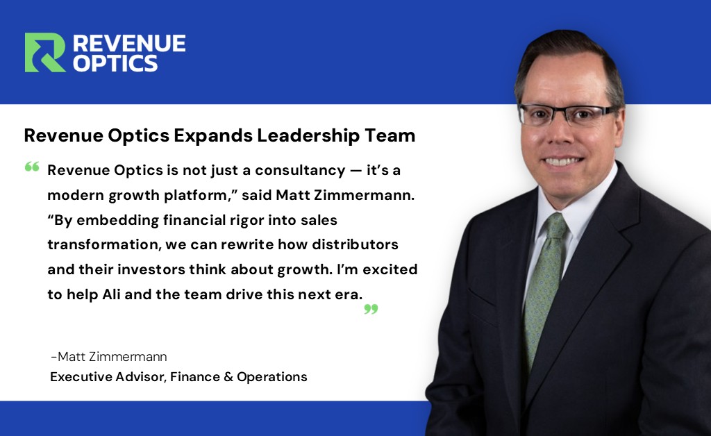 "Revenue Optics is not just a consultancy — it's a modern growth platform," said Zimmermann. "By embedding financial rigor into sales transformation, we can rewrite how distributors and their investors think about growth. I'm excited to help Ali and the team drive this next era."