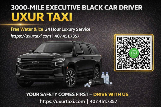 Uxur Taxi is a premium black car and private driver service based in Orlando, Florida, specializing in long‑distance, interstate, and nationwide ground transportation. Known for its professionalism, reliability, and luxury‑class vehicles, Uxur Taxi provides 24/7 private travel solutions for business travelers, families, seniors, and clients seeking a safe and comfortable alternative to flying. The company offers airport transfers, executive travel, long‑distance trips, and custom multi‑state routes.